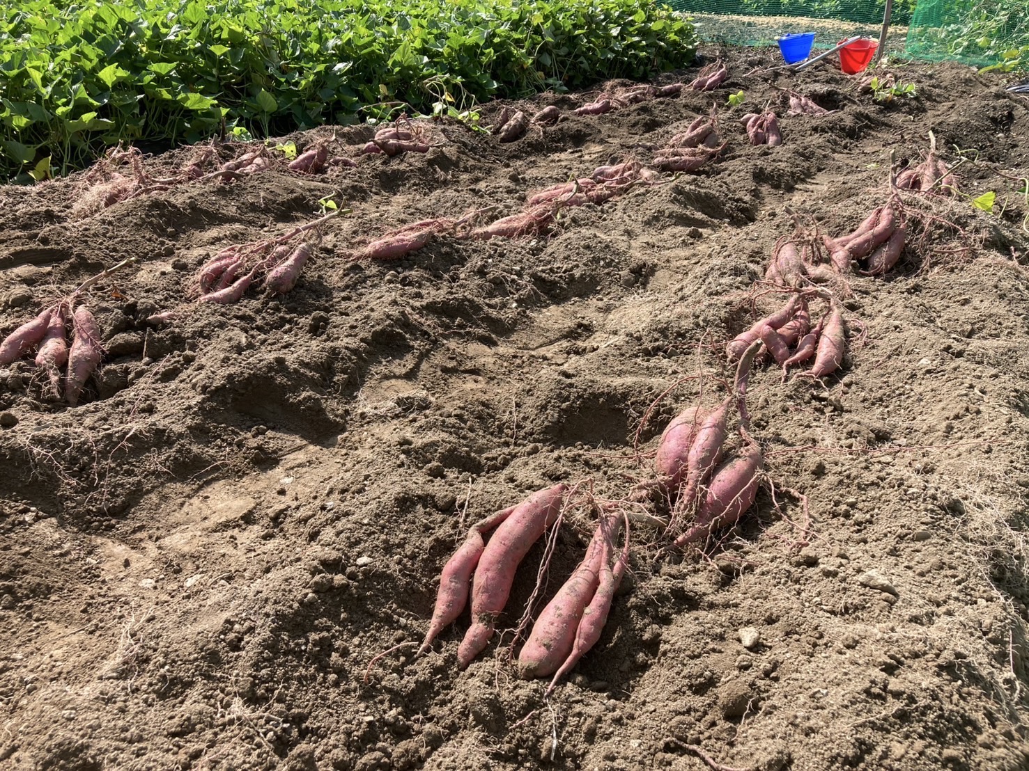 サツマイモは痩せた土地でも育ちますが、実際には「土壌水分の安定化」「炎天下での除草」「つる返し」「猪対策のフェンス設置」など、多くの工夫が必要でした。