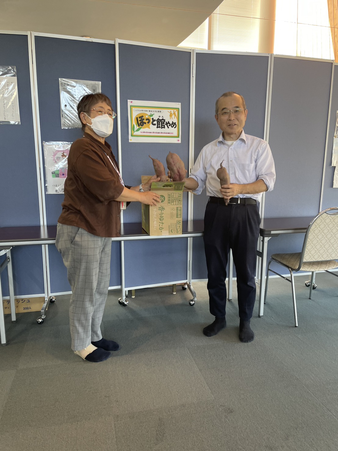 収穫したサツマイモの一部は、地域貢献活動の一環として、10月17日に八女市内の子ども食堂へ寄附を行いました。